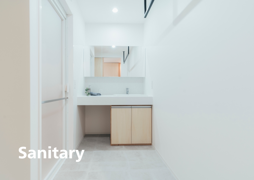 →躯体の梁や柱、パイプスペースなど圧迫感を感じられるものをプランニング・照明計画を⽤いて⾯積以上に広く感じられる空間を演出します。