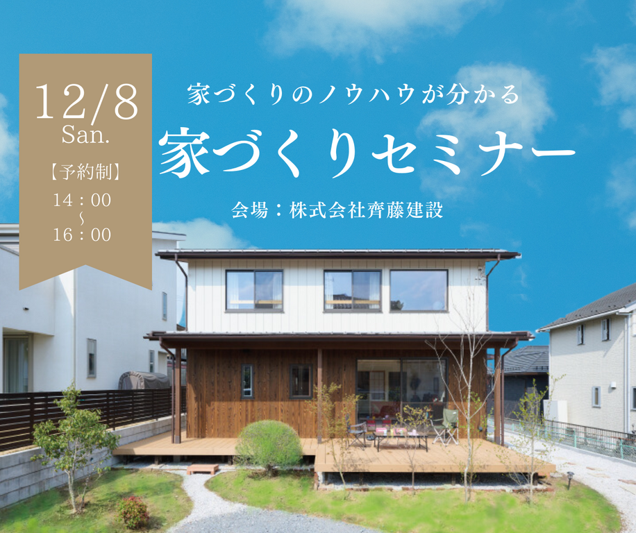 | タイトル | 家づくりの知恵、教えます!家づくりセミナー|12/8(日) |