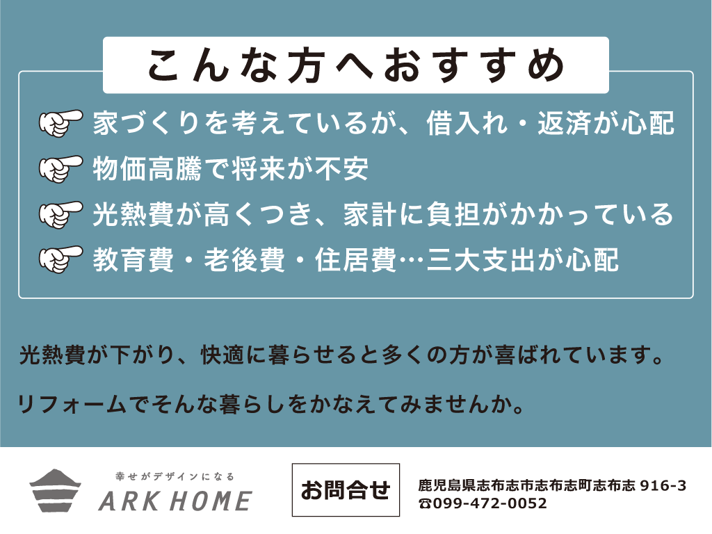 | タイトル | 【断熱リノベ】実体感見学会!暖かいお家を体感しよう【姶良市蒲生町】 |