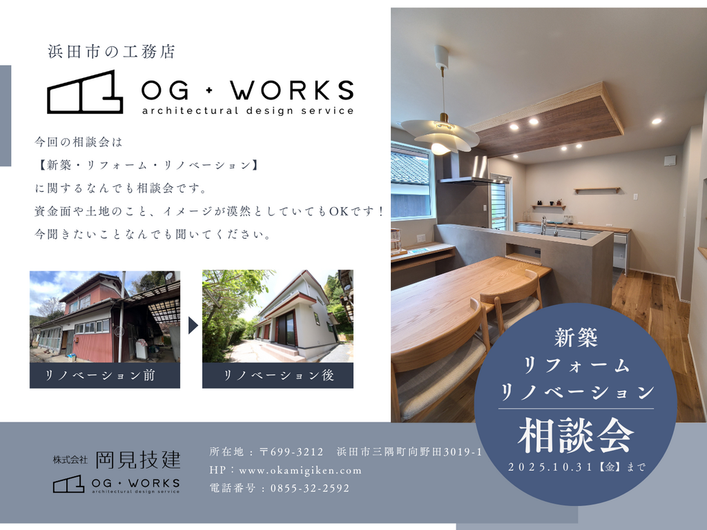 相談会期間中はそういったお話のご案内もできますので、どうぞお気軽に岡見技建までご相談ください。