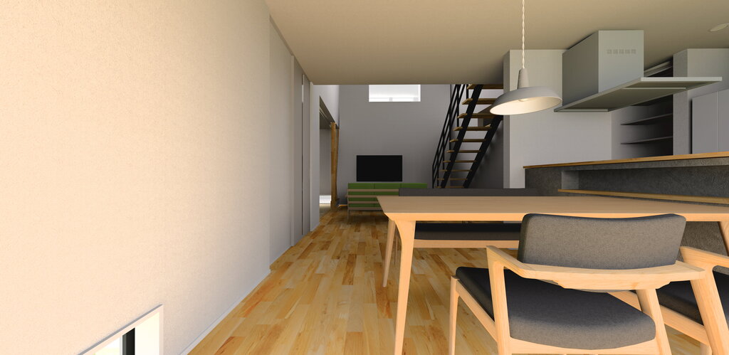 今回ご覧いただける物件は、比較的交通量のある道路に面しているため、住む人が視線を気にせず、安心の中で暮らしを楽しむ間取りを目指しました。