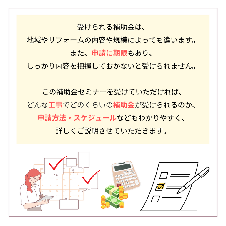 補助金を受けて、より快適な住まいを手に入れるために、ぜひこのセミナーにご参加ください