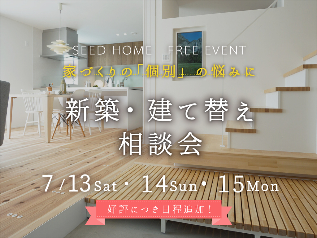 大阪・堺市・富田林市・大阪狭山市の注文住宅「SEEDHOME」では、家づくりに関するご相談が無料でできる「新築・建て替え相談会」を開催します♪