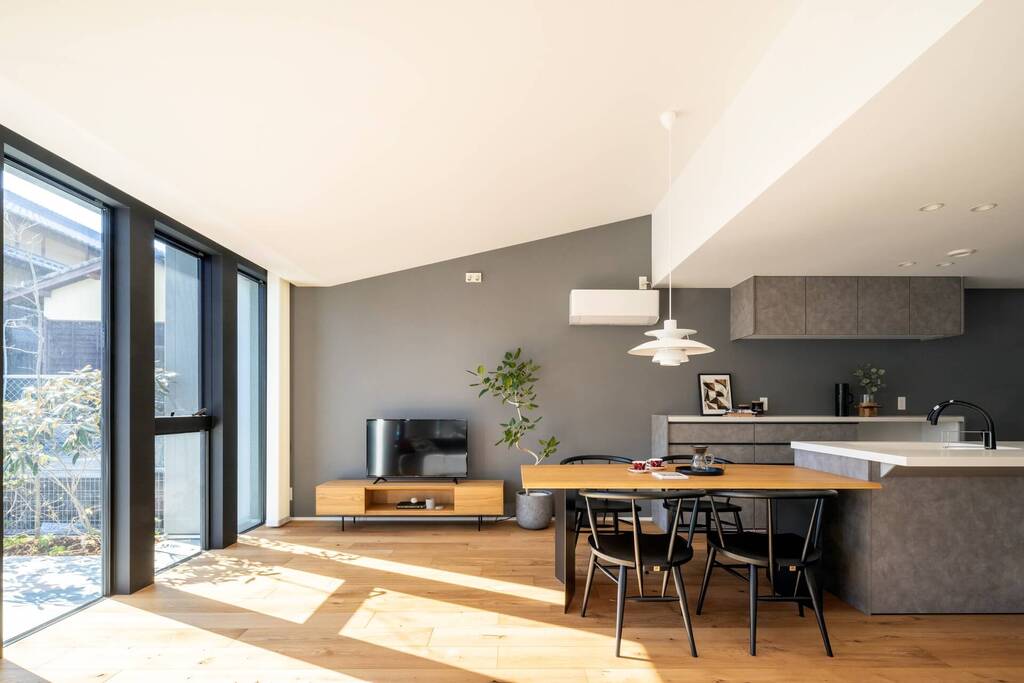 高気密・高断熱で季節の影響を抑え、太陽が降り注ぐリビングで明るさとぬくもりを取り込み部屋として使えるロフトは、暮らしの変化に合わせて使い方を広げる余白へ、外観はガルバリウム鋼板とジョリパットでまとめ、素材の表情を活かした端正な佇まいに性能・空間・デザインが一つにつながる、毎日が心地よさに包まれた住まいです。