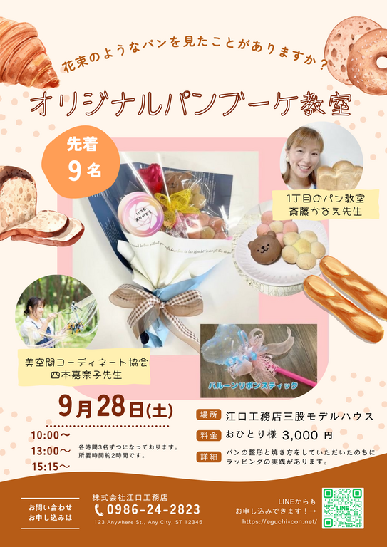 この機会に、ぜひ「花束のようなオリジナルパンブーケ教室」に参加して、心温まるパン作りを体験してください。あなたのご参加を心よりお待ちしております!