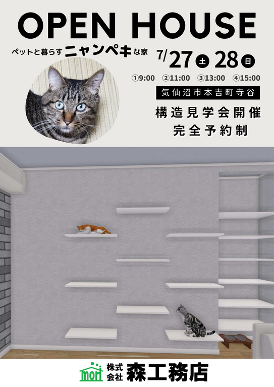 | タイトル | ペットと暮らすニャンペキ家 構造見学会 |