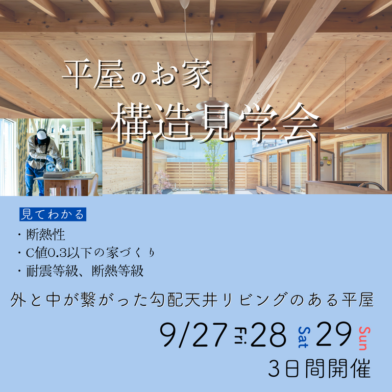 | タイトル | 《甲賀市信楽町》構造見学会 ~外と中が繋がった勾配天井リビングのある平屋~ |