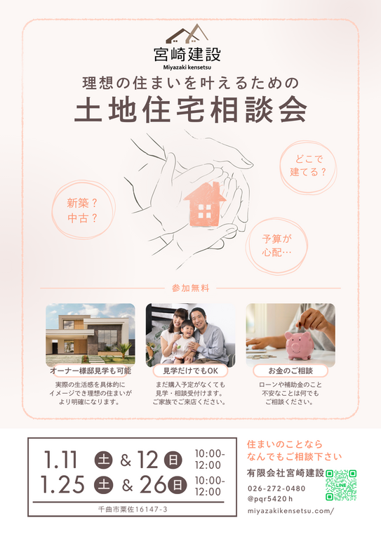 | タイトル | 【屋代小中エリア】でご検討の方!土地住宅相談会開催! |