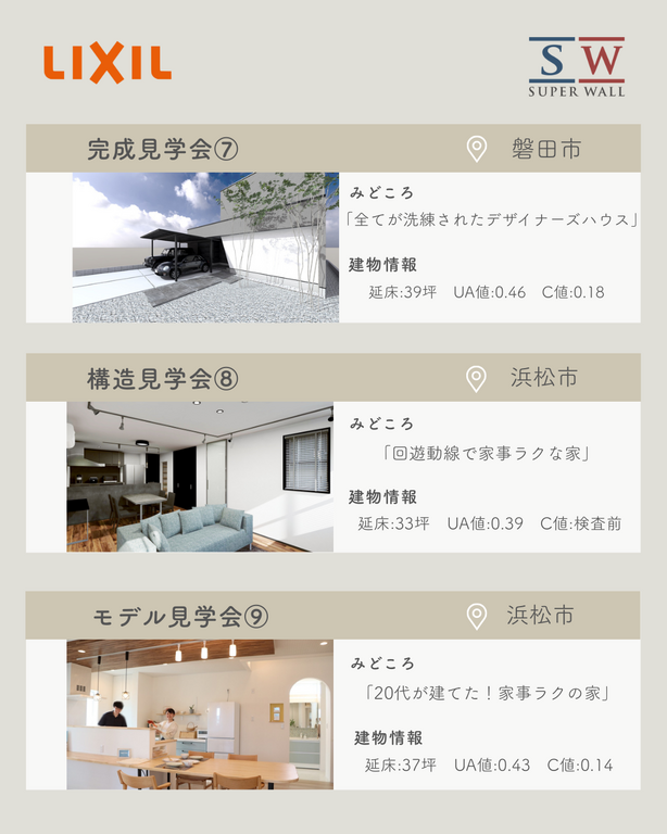 | タイトル | 【静岡県内一斉開催】LIXILスーパーウォール工法合同見学会 |