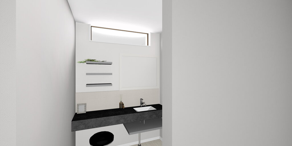 洗面カウンターをあえてランドリーとは別に廊下部分へ配置。家族の動線がスムーズに!流行りのアイカのワイドカウンターで広々。メイクスペースもあり快適です。