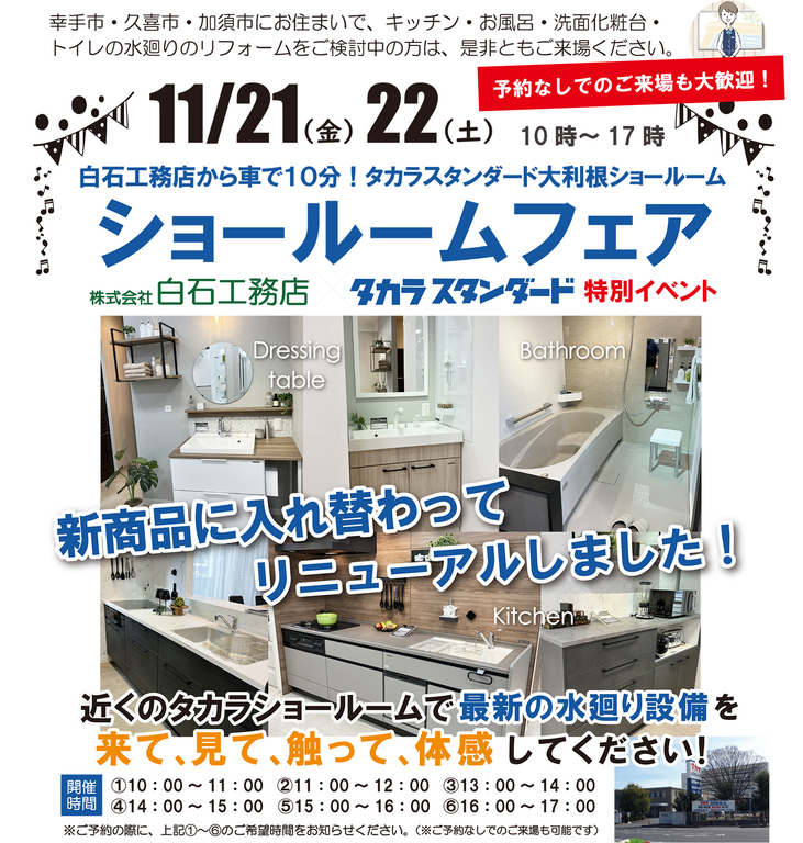 11/21(金)11/22(土)白石工務店プレゼンツ【タカラショールームフェア】