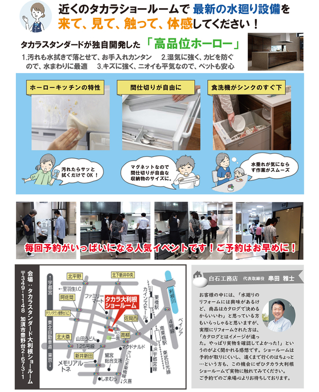 ・タカラスタンダードの最新設備を直接体験できます!