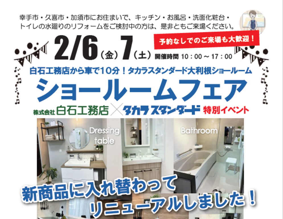 2/6(金)2/7(土)白石工務店プレゼンツ【タカラショールームフェア】