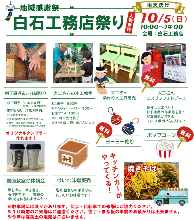 | タイトル | 10/5(日)【白石工務店祭り】2025雨天決行・入場無料 |