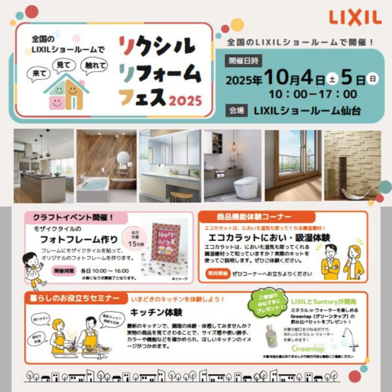 LIXILショールーム仙台にて『来て!見て!触って!リフォームフェス2025』を開催いたします!