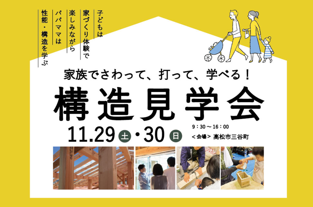 タイトル 【高松市牟礼町】家族で!触って、打って、学べる!体験型構造見学会