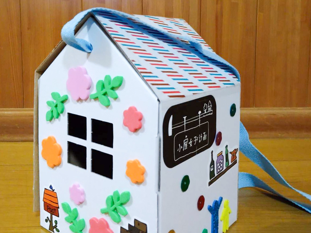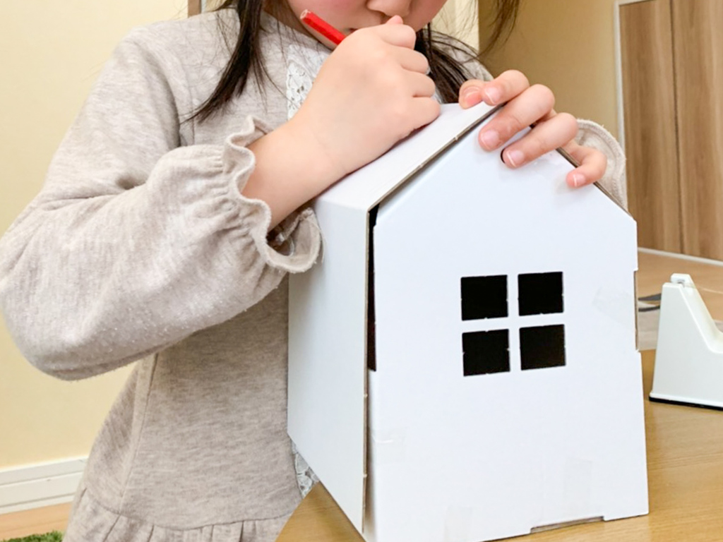 ダンボールでおうちの形に組み立てる「おうちバコ」。