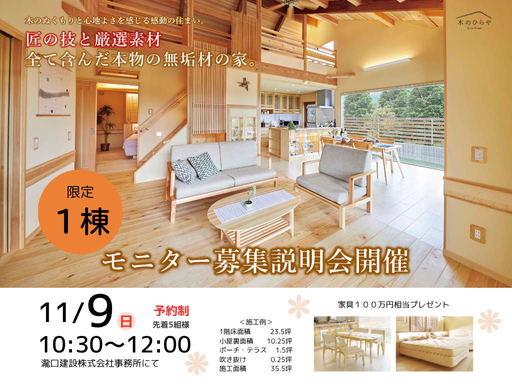 | タイトル | 【予約制】限定1棟!モニター説明会開催 |