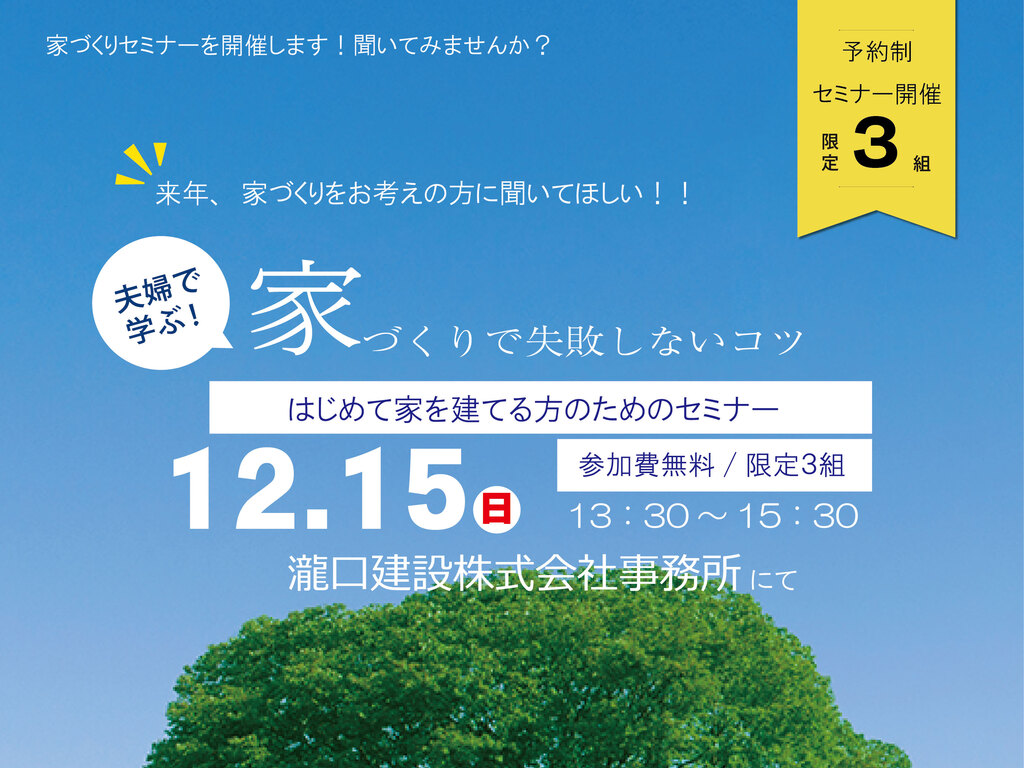 | タイトル | 【浜松市】新築をご検討中の方必見!家づくりのための特別セミナー開催 |