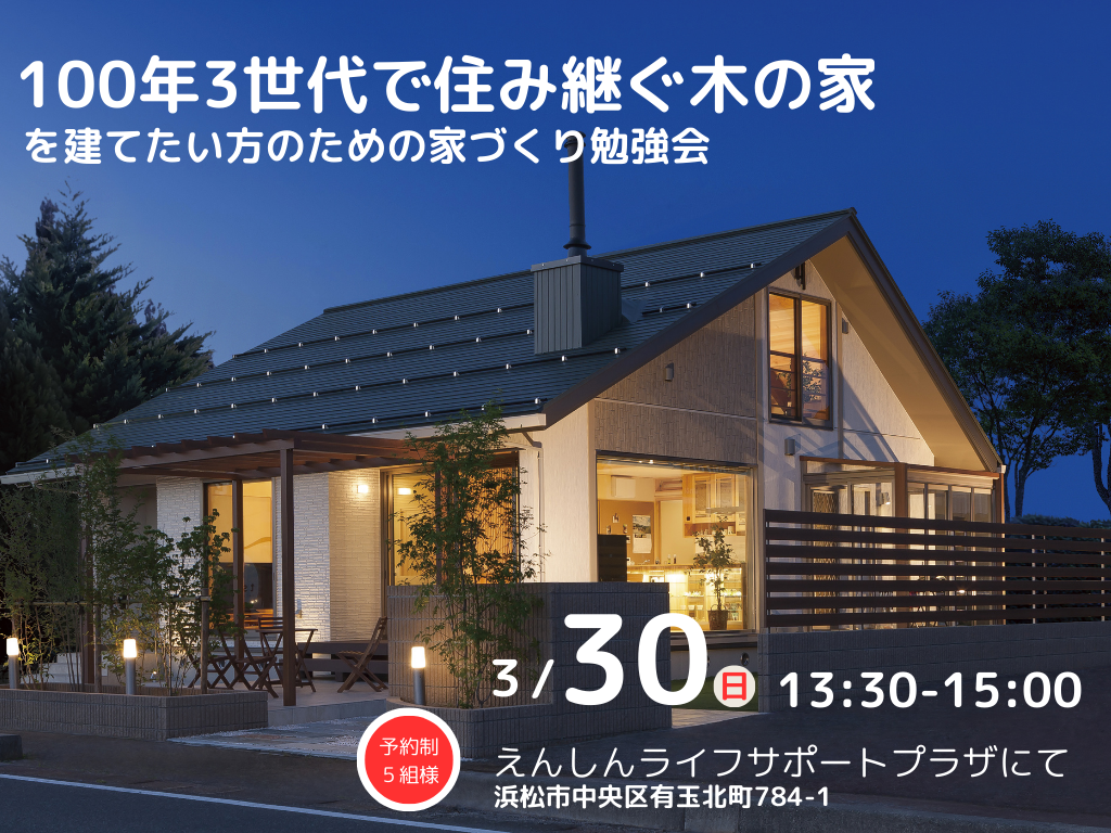 | タイトル | 【浜松市】100年3世代住み継ぐ木の家を建てたい方へ!家づくり勉強会開催 |