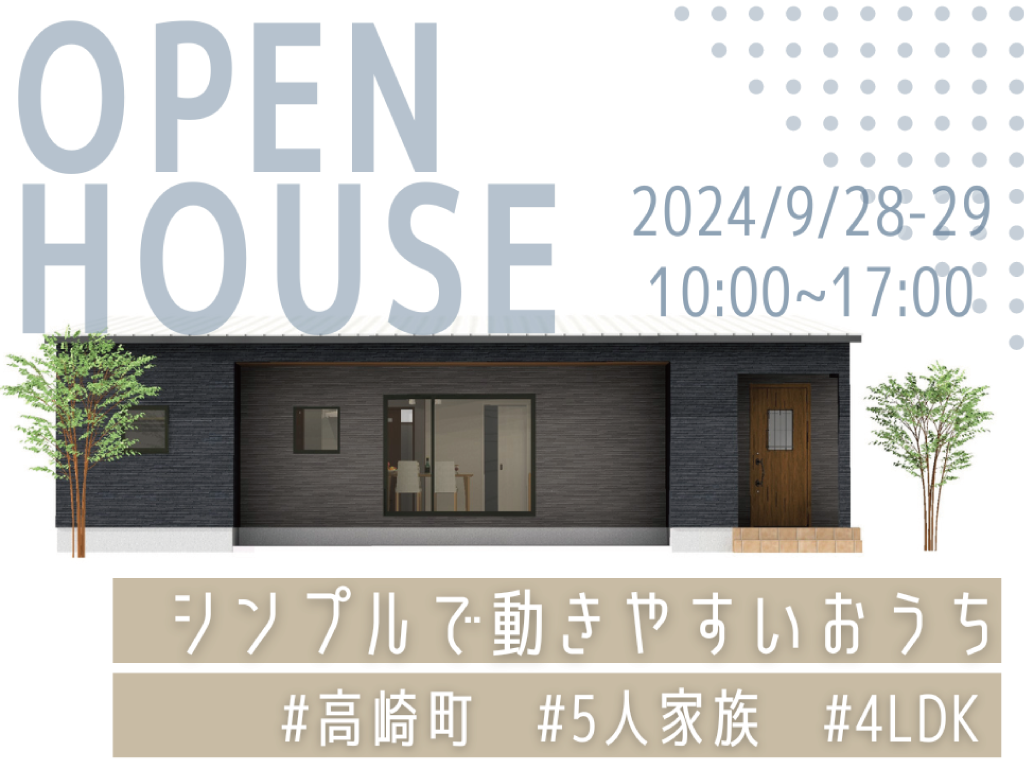 家を建てることは、人生の中でも特別な出来事です。あなたの夢のマイホームを実現するための第一歩を、私たちと一緒に踏み出しませんか?この度、特別な「OPEN HOUSE」を高崎町にて開催いたします。あなたの理想の住まいを見つけるための貴重な機会です。