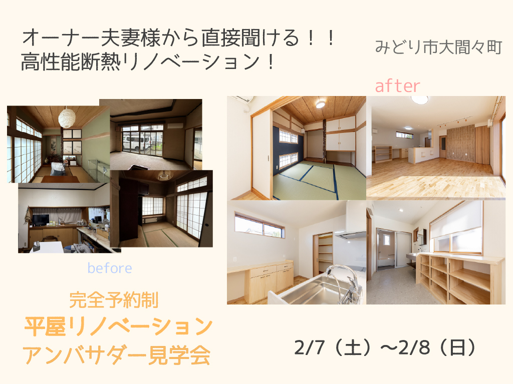 予約制アンバサダー見学会|オーナー夫妻様から直接聞ける!!|高性能断熱リノベーション!
