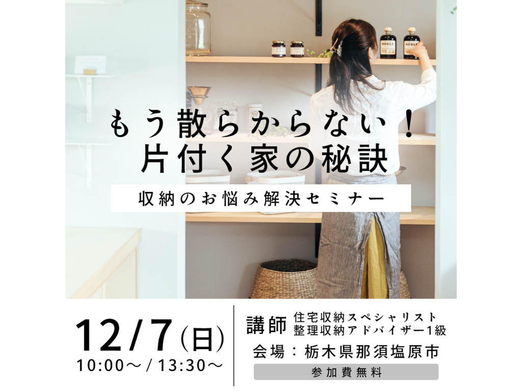 | タイトル | もう散らからない!片付く家の秘訣 収納のお悩み解決セミナー【那須塩原市】 |