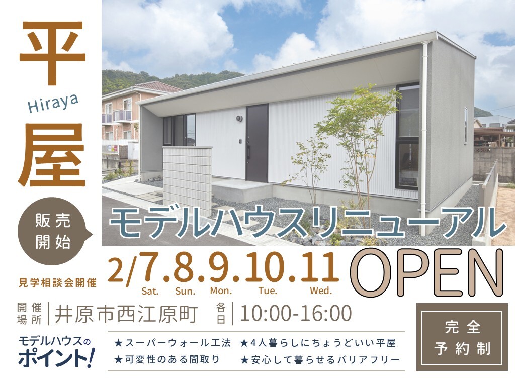 | タイトル | 平屋モデルハウス リニューアルOPEN|販売開始&見学相談会 |