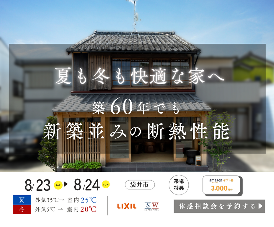 | タイトル | スーパーウォールリフォームで住まい快適に|【来場特典付き】断熱リノベーション体感相談会を開催! |