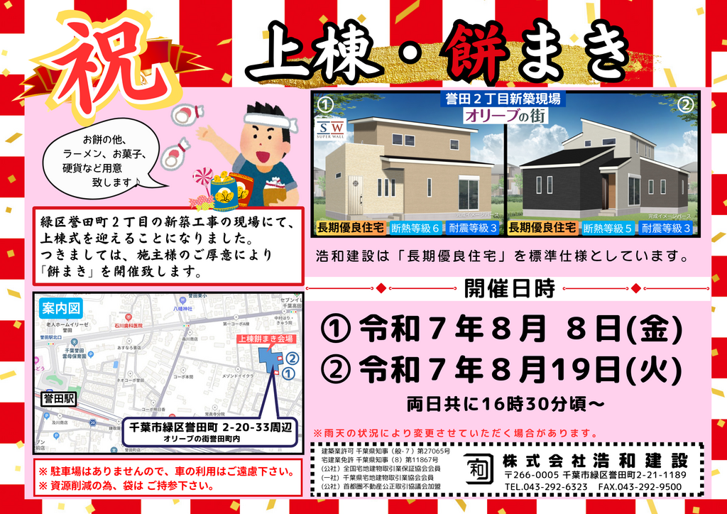 【千葉市緑区誉田町】 クニナほんだ保育園 上棟&餅まき開催!