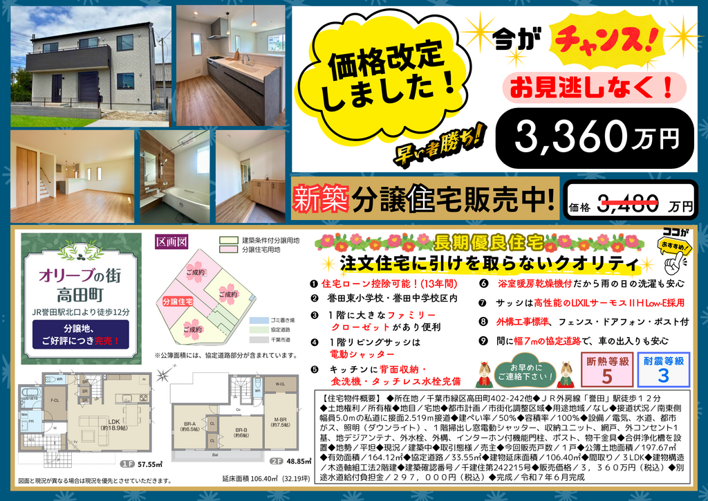 【価格改定しました!】千葉市緑区高田町 新築分譲住宅 販売中!