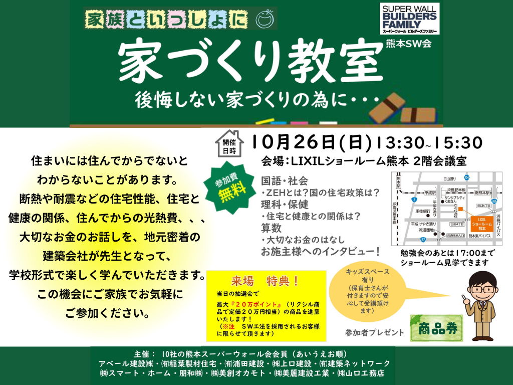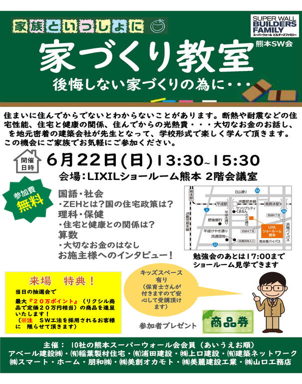 福岡県大牟田市のシェプロホームです!イベントページをご覧いただき、ありがとうございます。シェプロホームが所属する「熊本スーパーウォール会」が開催する、家づくり勉強会のお知らせす。