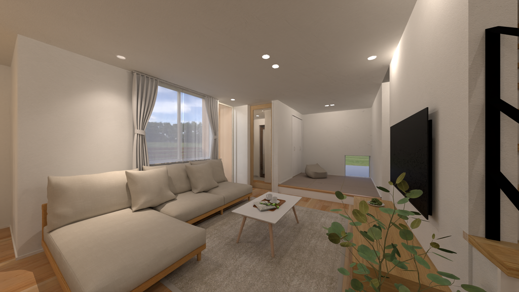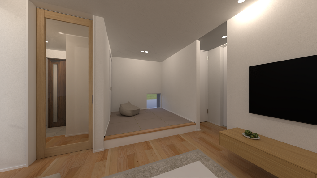 家族がゆったりとくつろげるLDK。リビングに隣接する和室は、ちょうど良い広さがあり、リラックスしたり、子供たちが遊んだりするのに最適!キッチンから様子が見えるのも嬉しいですね。