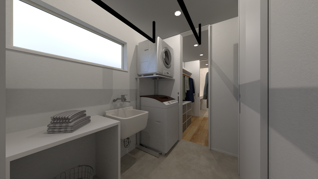 水回りは、「洗う・干す・しまう」の動線がとても効率的な間取り。