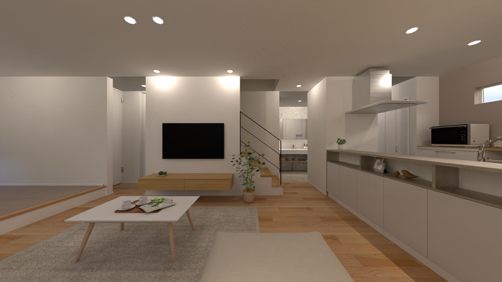 LDKからは洗面やお風呂、2階へのアクセスもスムーズ。リビングが家の中心にあり、自然と家族が集まります。