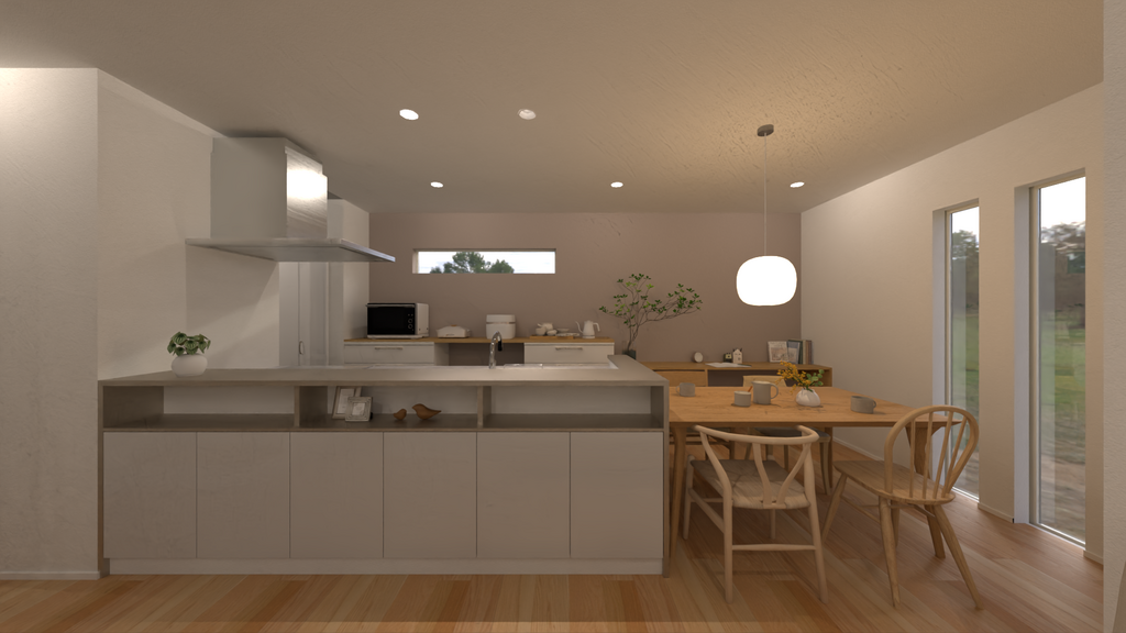 家族によって収納するものも、使い方も違うから、造作収納を採用。家具と同じようにインテリアにもなるので、キッチン自体はシンプルにして、好みの空間を造作するのもあり!