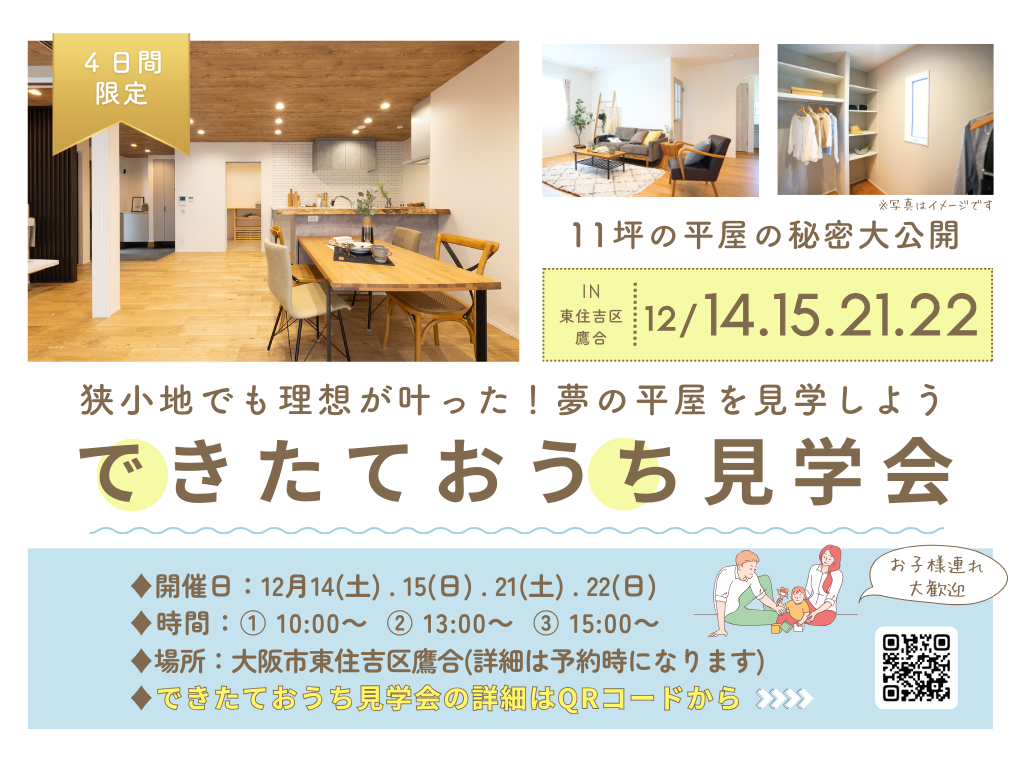 | タイトル | 【大阪市東住吉区】11坪の平屋の秘密大公開!できたておうち見学会 |