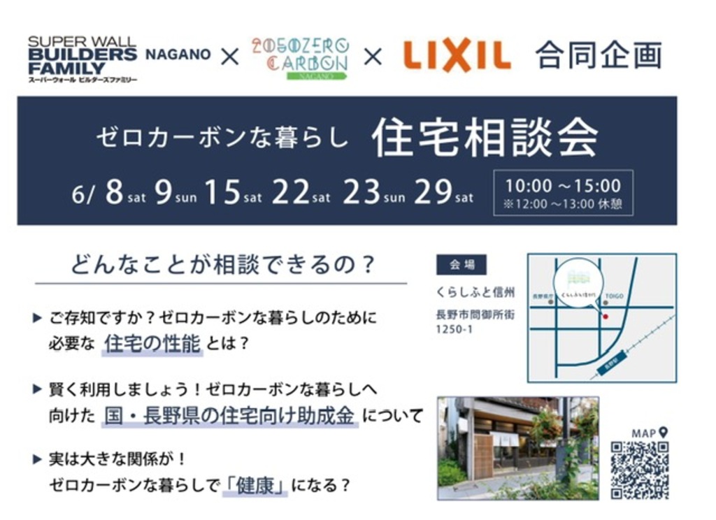 情報発信拠点「くらしふと信州」でゼロカーボンな暮らし「住宅相談会」を開催します。