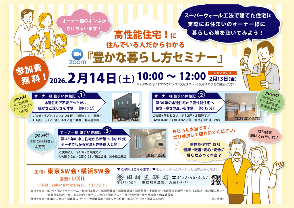 実際にスーパーウォール工法で建てた住宅にお住まいのオーナー様から、暮らし心地や本音を直接聞ける貴重なチャンス!