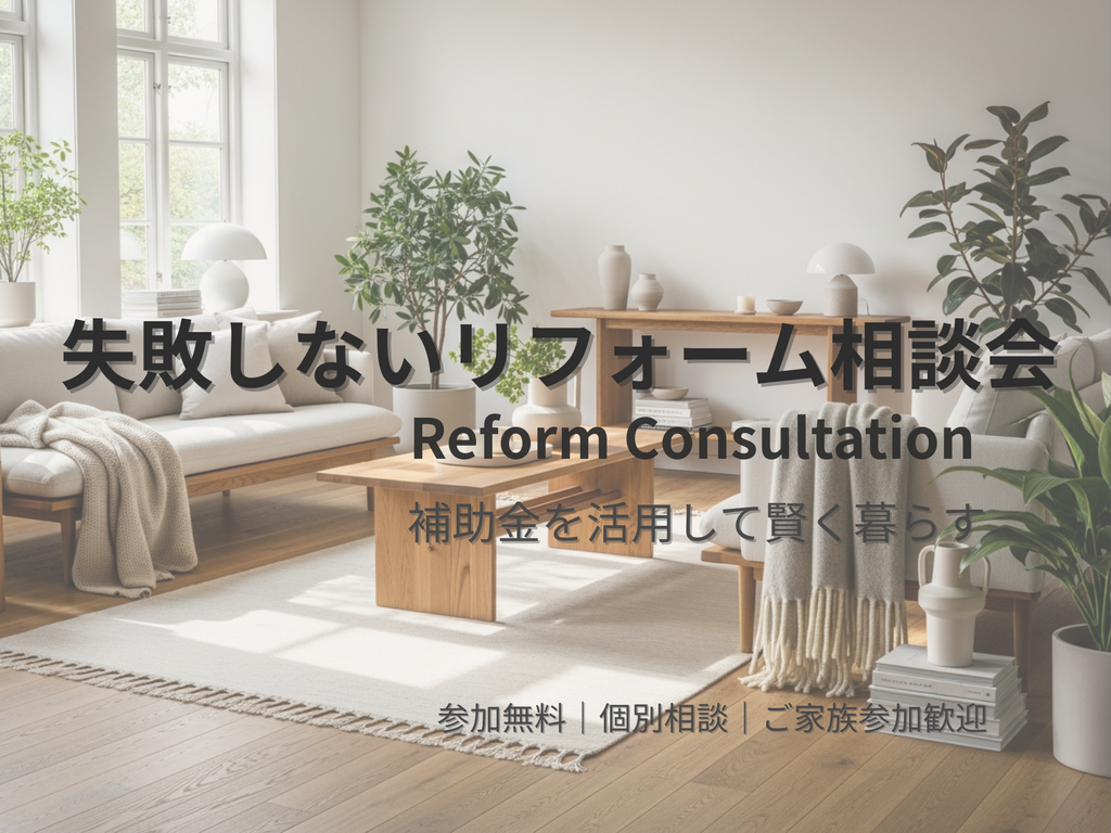 | タイトル | 失敗しないリフォーム相談会!補助金を活用して賢く暮らす |