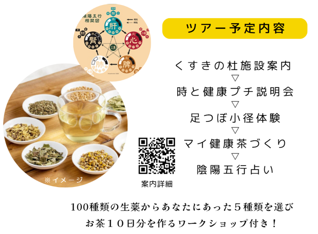 ツアーの中で100種類の生薬からあなたにあった5種類を選び、お茶10日分を作るワークショップもございます!