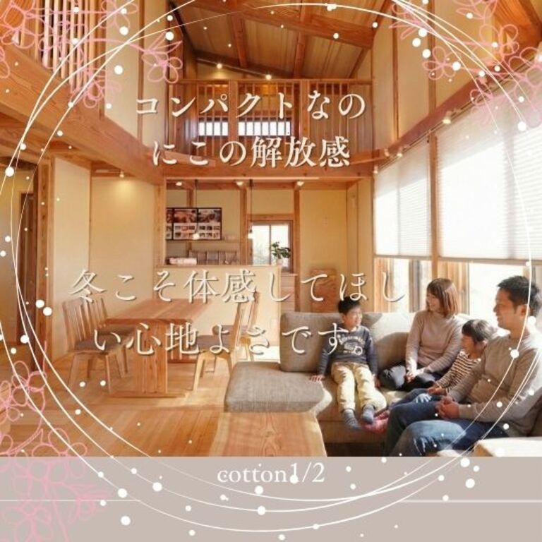 ✔ コンパクト×大空間 建坪はコンパクトに抑えつつ、吹き抜けや視線の抜けを計算することで 数字以上の広がりを感じられる「のびのびとした空間」を実現しました。