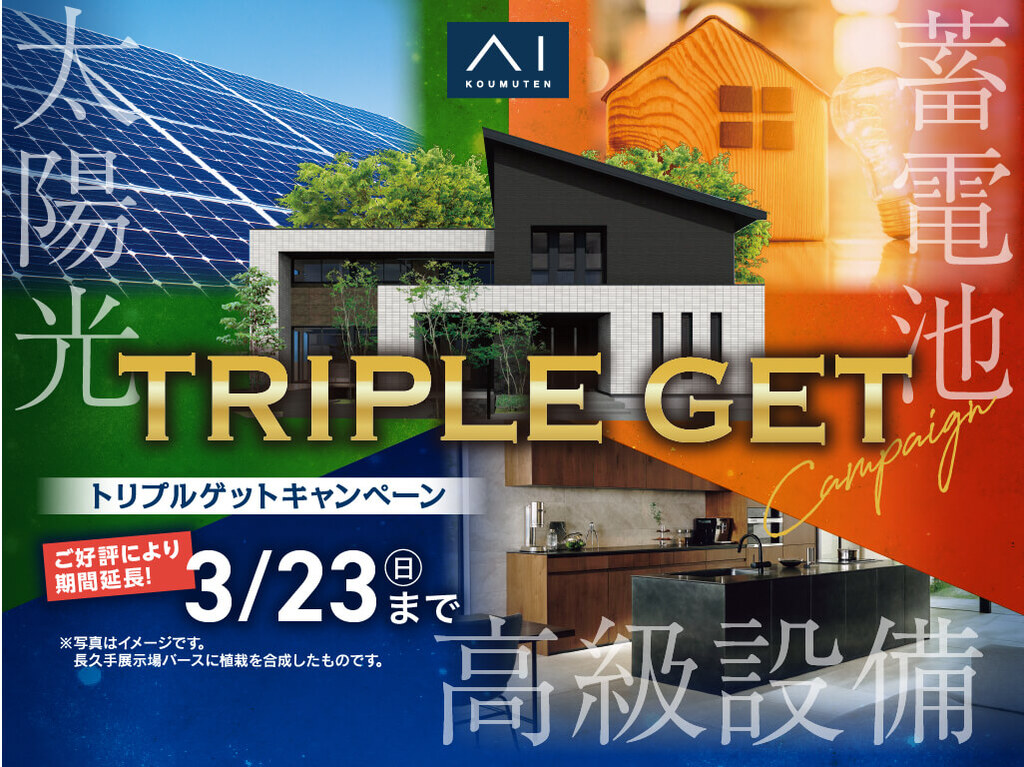 | タイトル | 一宮展示場 トリプルゲットキャンペーン 3/23まで |