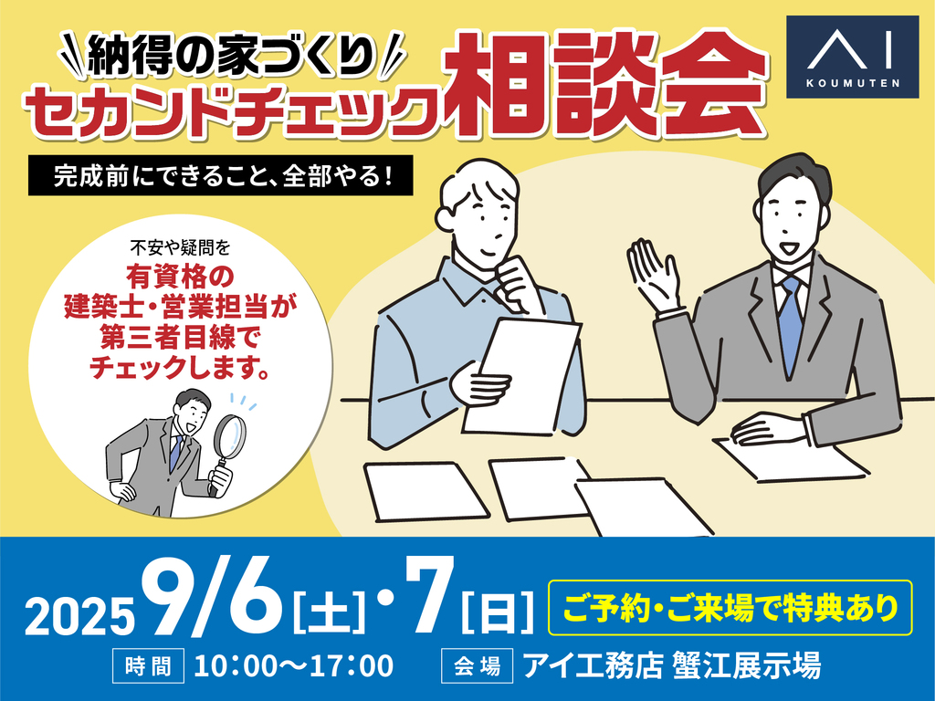 | タイトル | 蟹江展示場 納得の家づくりセカンドチェック相談会 |