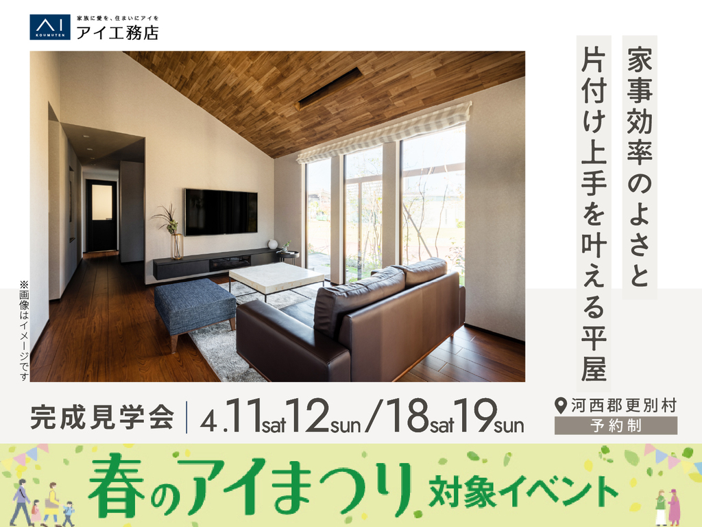 | タイトル | 帯広展示場 《河西郡更別村》家事効率のよさと片づけ上手を叶える平屋 完成見学会 |