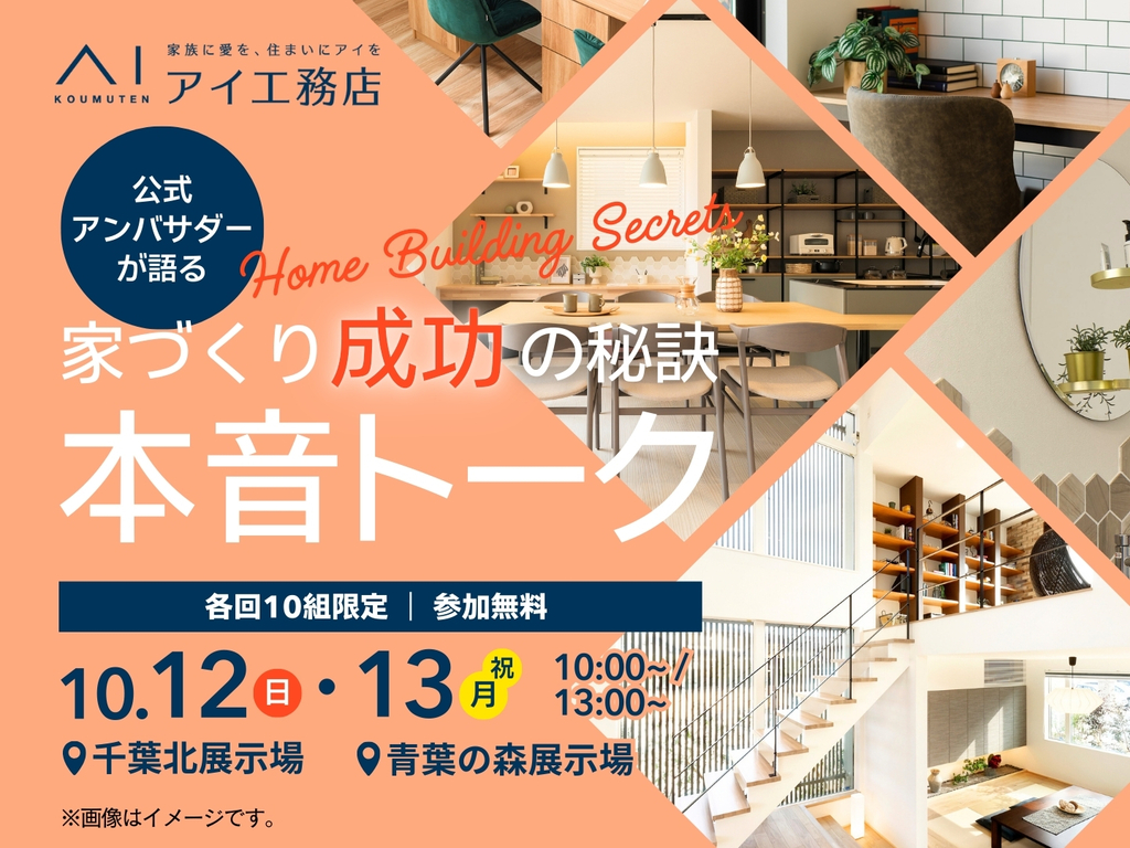 タイトル | 青葉の森展示場 公式アンバサダーが語る 家づくり成功の秘訣 本音トークイベント 【10月13日】 |