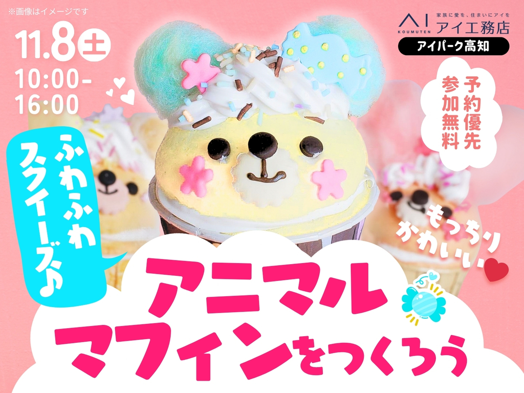 タイトル | アイパーク高知(複合型住宅展示場) ふわふわスクイーズ♪アニマルマフィンをつくろう |