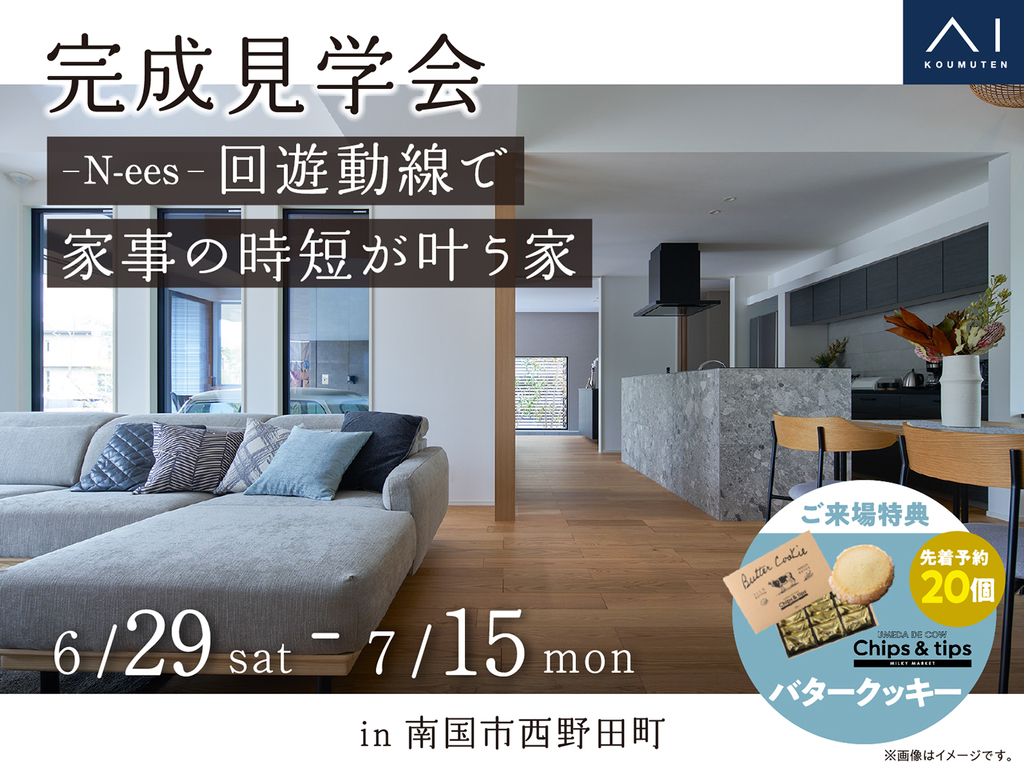 | タイトル | 高知展示場 《南国市西野田町》N-ees 回遊動線で家事の時短が叶う家 完成見学会 |