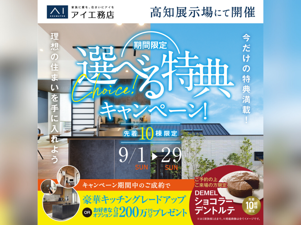 | タイトル | 高知展示場 選べる特典キャンペーン |