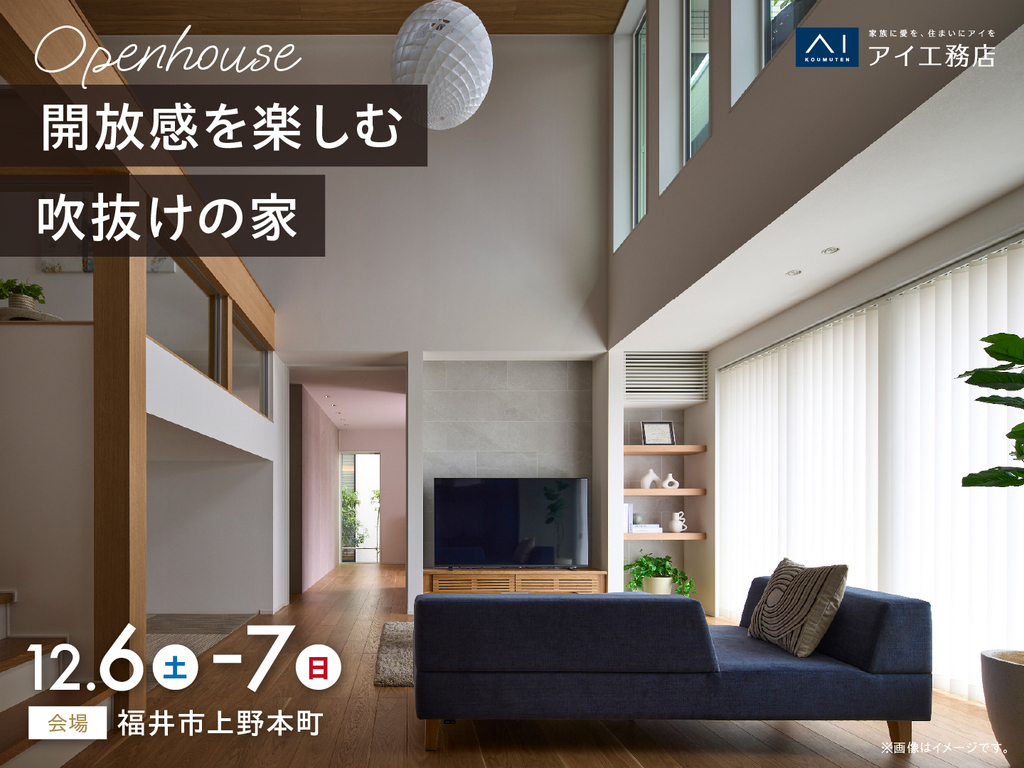 | タイトル | アイメッセ福井(複合型住宅展示場) 《福井市上野本町》開放感を楽しむ吹抜けの家 完成見学会 |